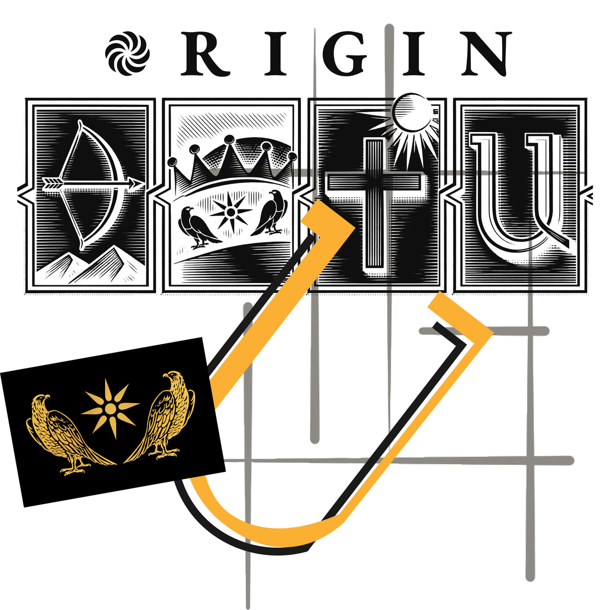 Each symbol is framed individually, but designed to read as a whole.