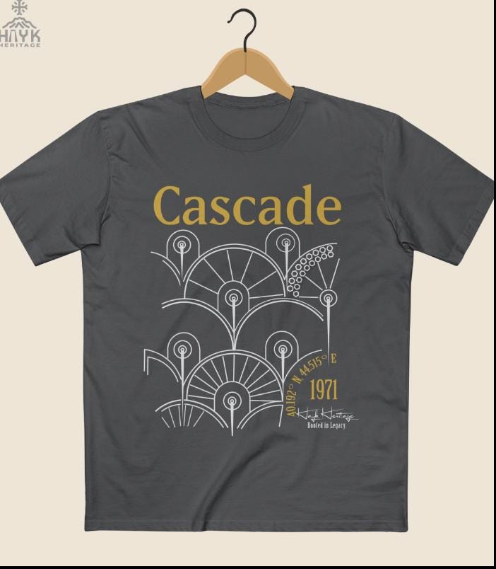 Celebrate Armenia’s iconic Cascade with a design that blends heritage, architecture, and modern artistry. This Hayk Heritage exclusive features a stylized line-art interpretation of the famous Yerevan Cascade fountains — reimagined with clean geometry, historic coordinates, and the year the monument was built (1971).